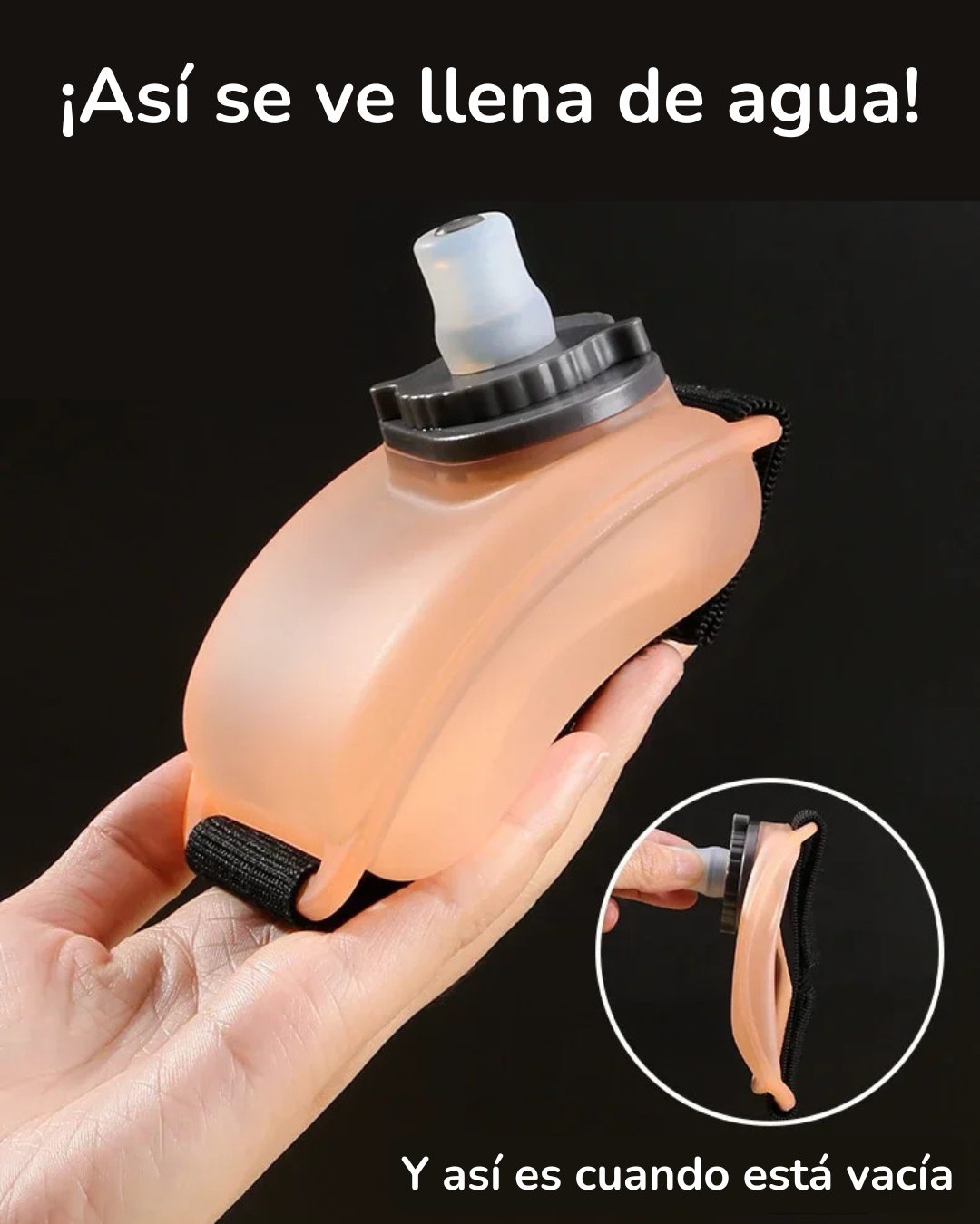 Solo ajusta el brazalete, llena el depósito y disfruta de tu agua al instante. Sin complicaciones, sin esfuerzo, solo hidrátate.